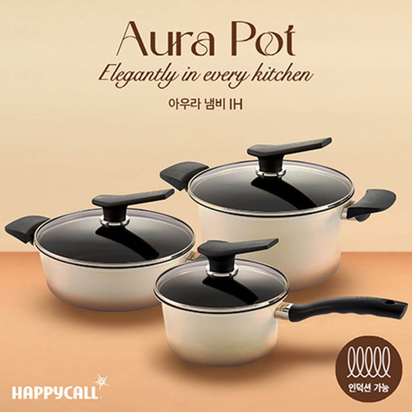 • 해피콜 아우라 IH냄비 3종C (편수18+전골24+곰솥24) (+0원)